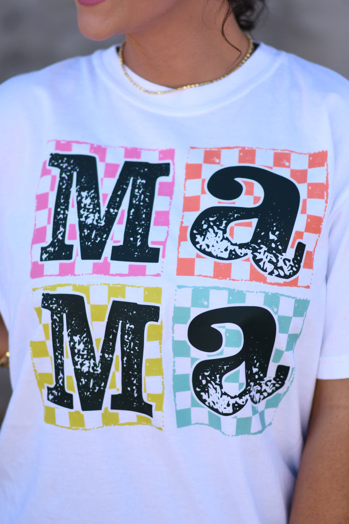 The Stacked Checkered Mama tee is the product you didn't think you need, but once you have it, something you won't want to live without.