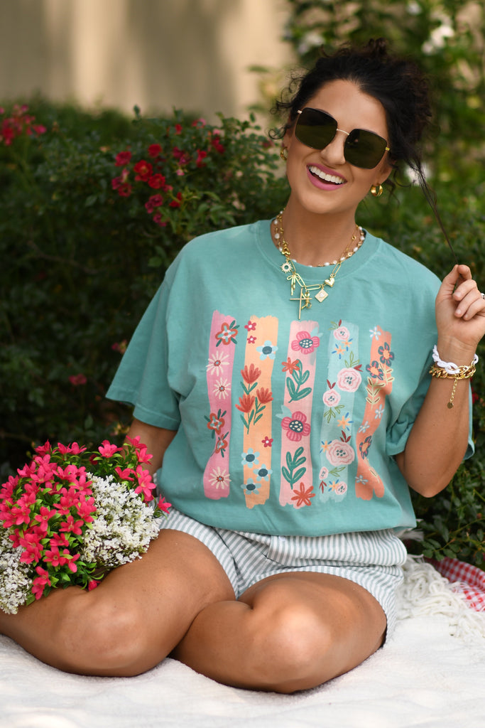 The Flower Swatch Tee destined to impress, and priced at only $33.99, for a limited time.