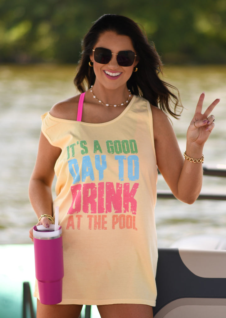 The It’s A Good Day To Drink At The Pool Tank/Tee destined to impress, and priced at only $33.99, for a limited time.