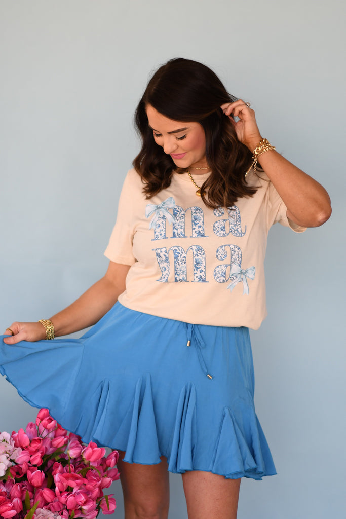 Mama Stacked Blue Floral Tee