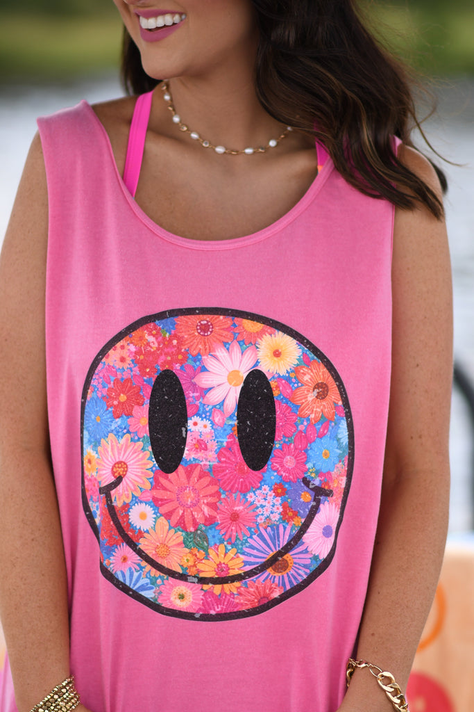 The Neon Floral Smiley Tank/Tee is the product you didn't think you need, but once you have it, something you won't want to live without.