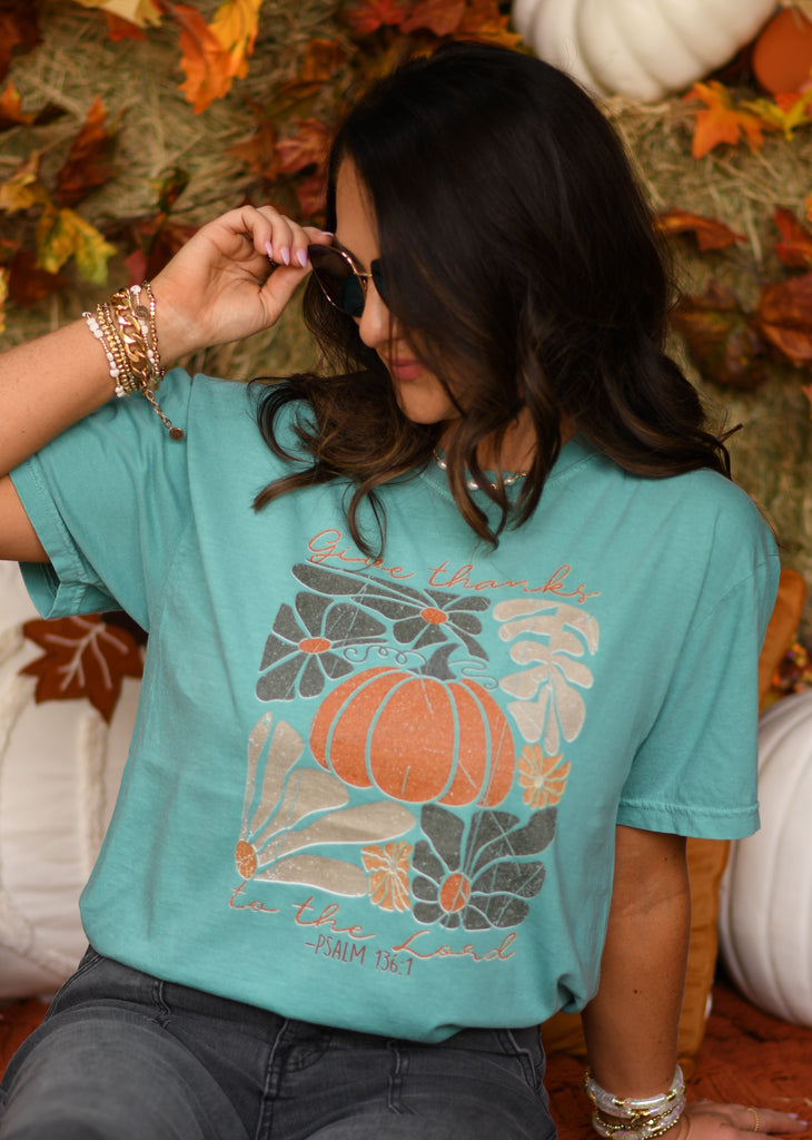GIVE THANKS TO THE LORD PUMPKIN FLORALS TEE
