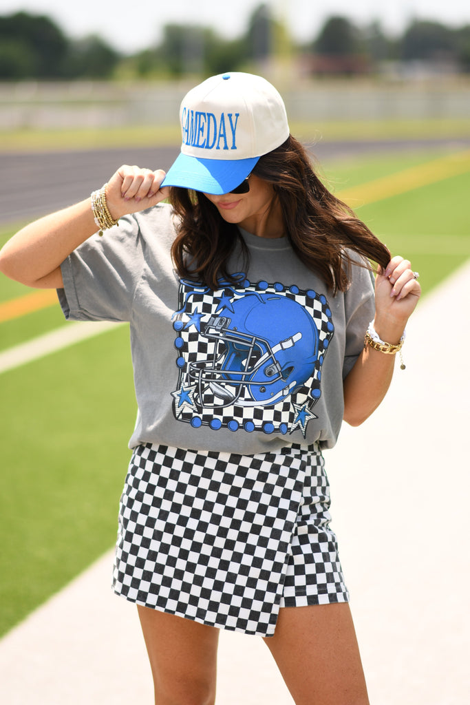 The Checkered Royal Helmet Tee is the product you didn't think you need, but once you have it, something you won't want to live without.