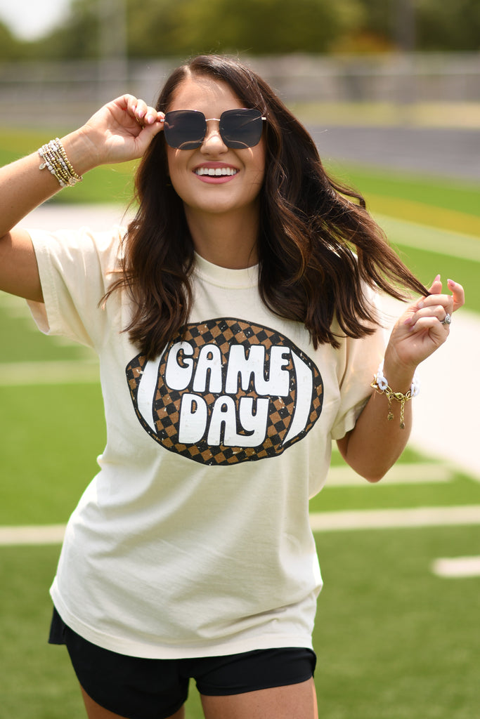 The Game Day Checkered Football Tee is far and away, one of our most popular items. People can't seem to get enough of it.