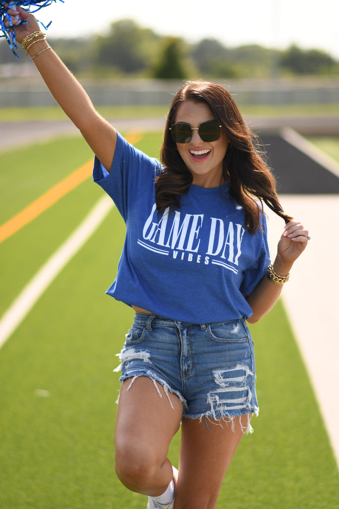 The RTS Blue Game Day Vibes Tee is the product you didn't think you need, but once you have it, something you won't want to live without.