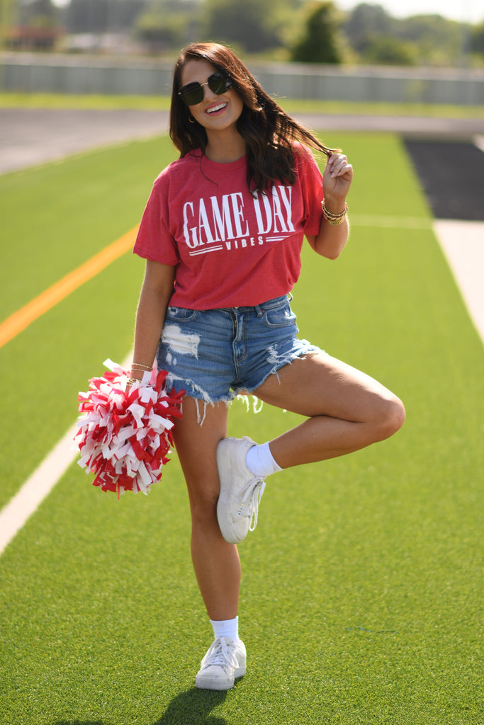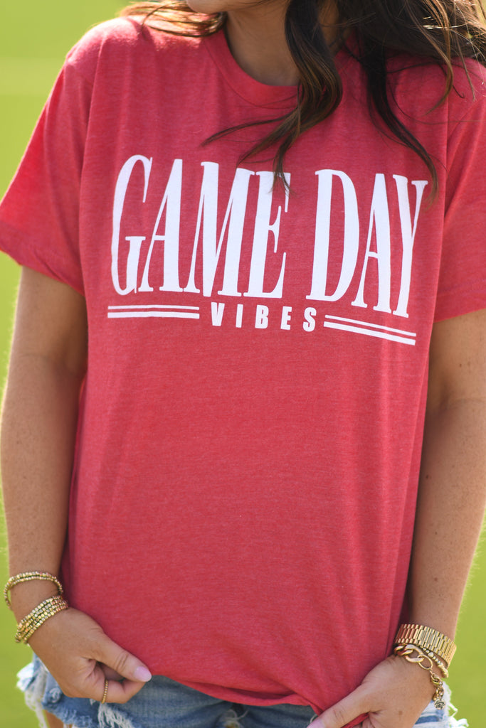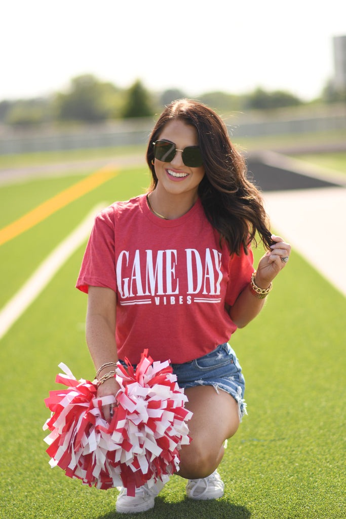 Life is too short to live without the RTS Red Game Day Vibes Tee. Be happy. Be Content. Be Satisfied.