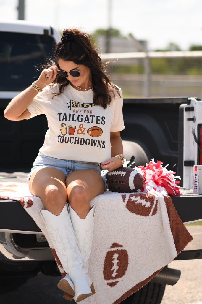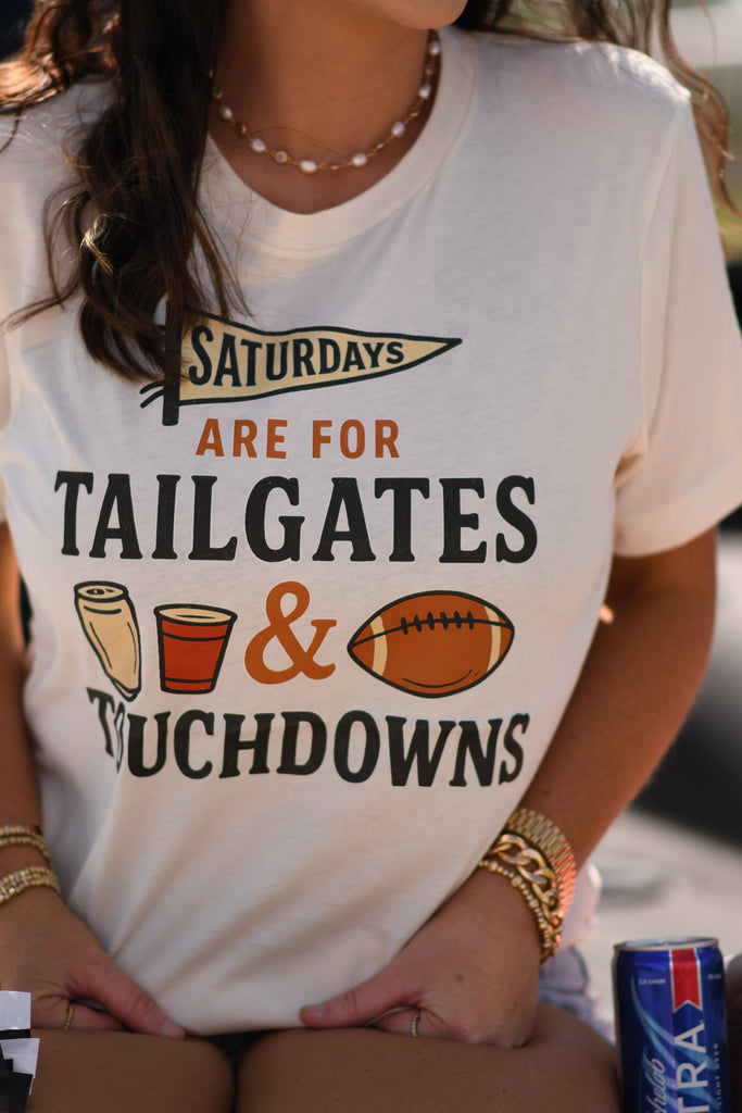 Life is too short to live without the Saturdays Are For Tailgates And Touchdowns Tees. Be happy. Be Content. Be Satisfied.