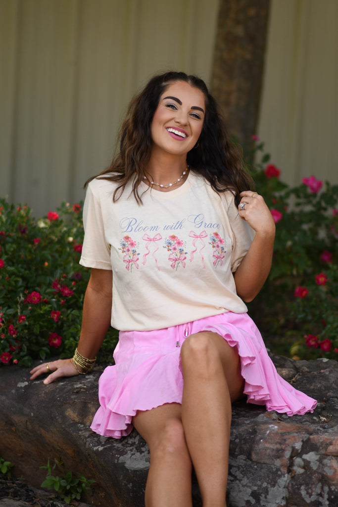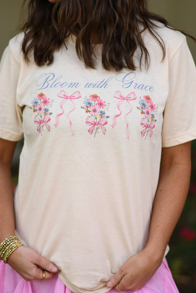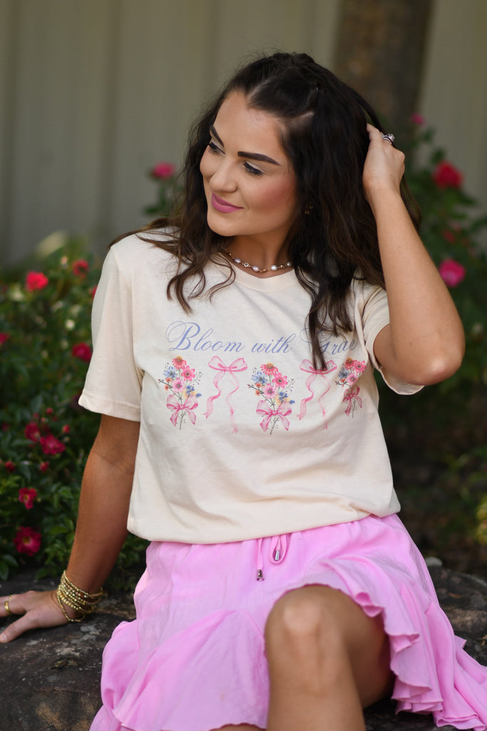 Life is too short to live without the Bloom With Grace Floral Tee. Be happy. Be Content. Be Satisfied.