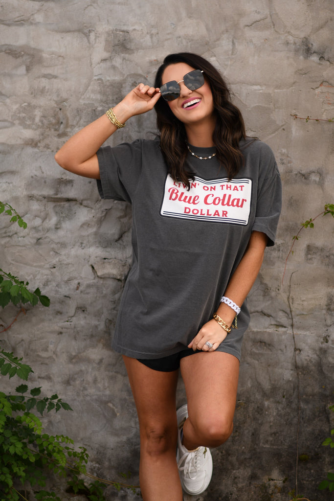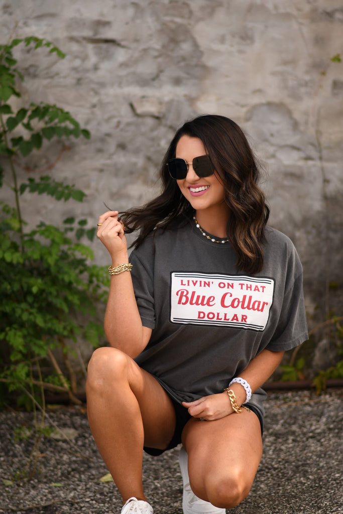 The Blue Collar Dollar Tee is far and away, one of our most popular items. People can't seem to get enough of it.