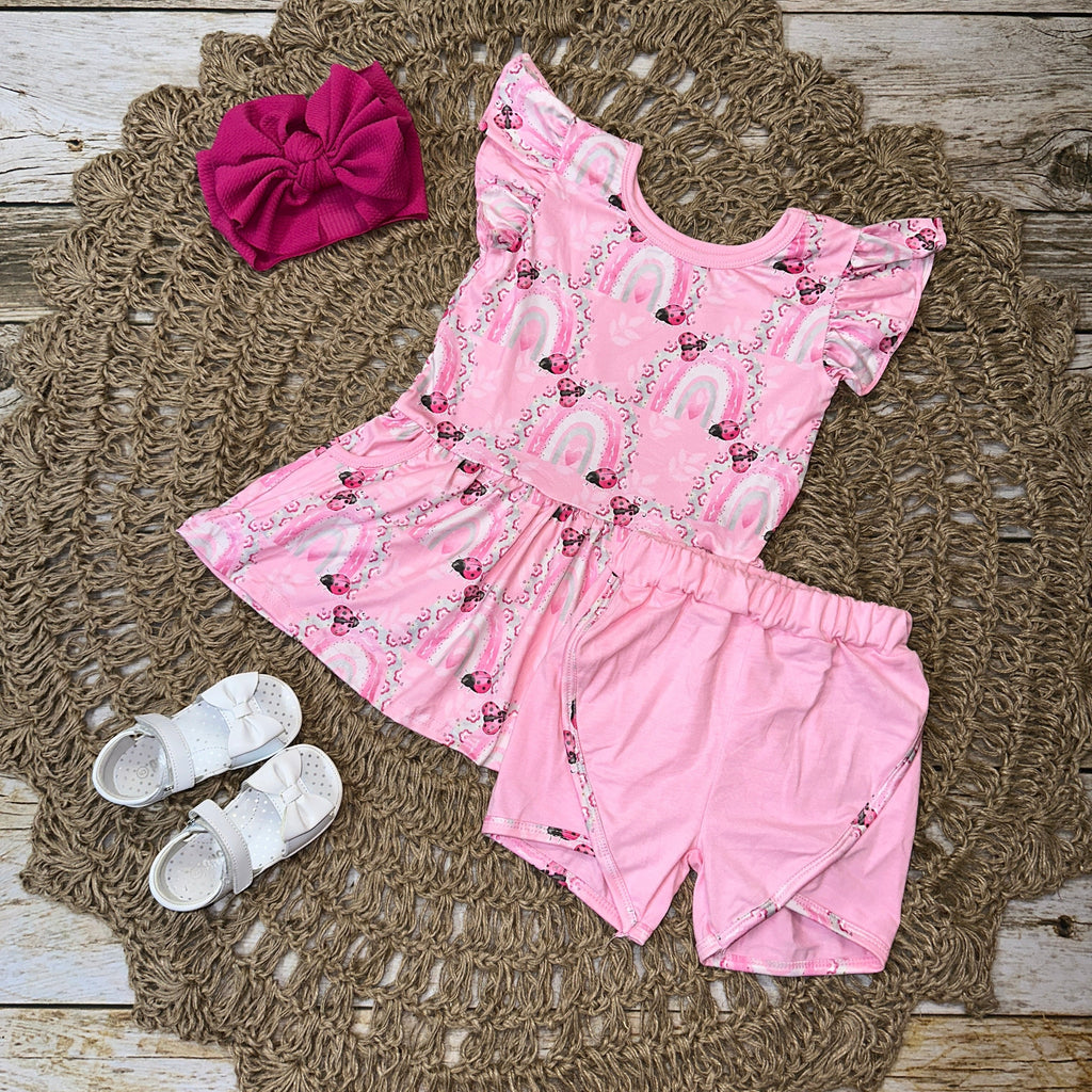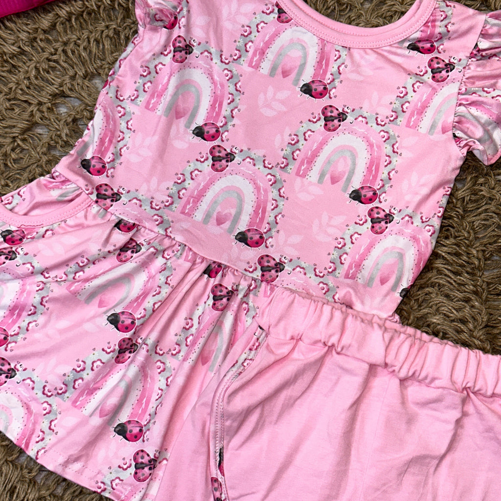 Ladybugs & Rainbows Pocket Peplum & Short Set