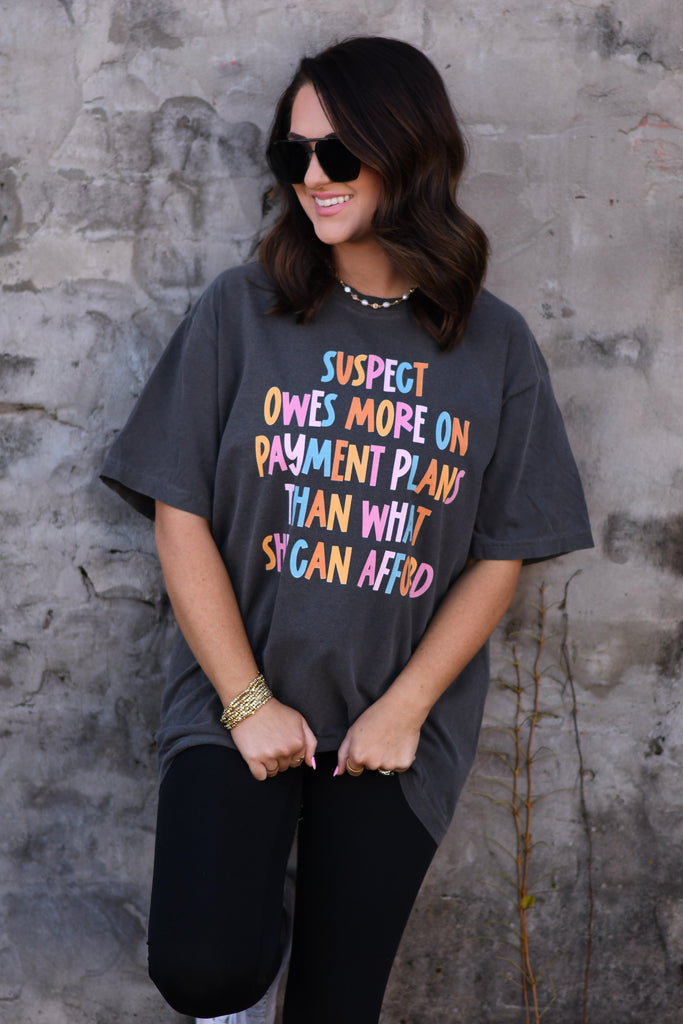 The Suspect Owes More On Payment Plans Tee is a sensational customer favorite, and we hope you like it just as much.